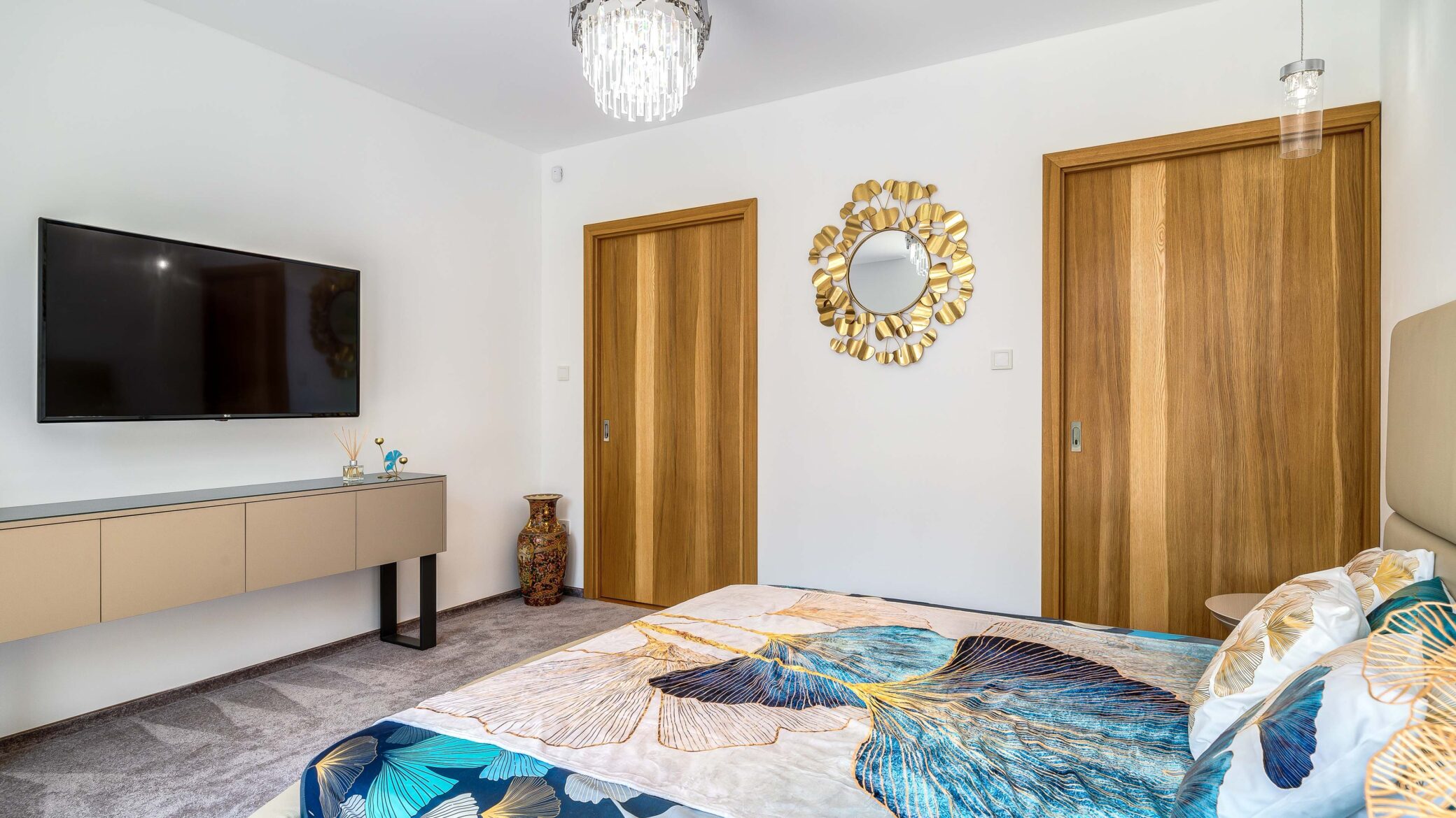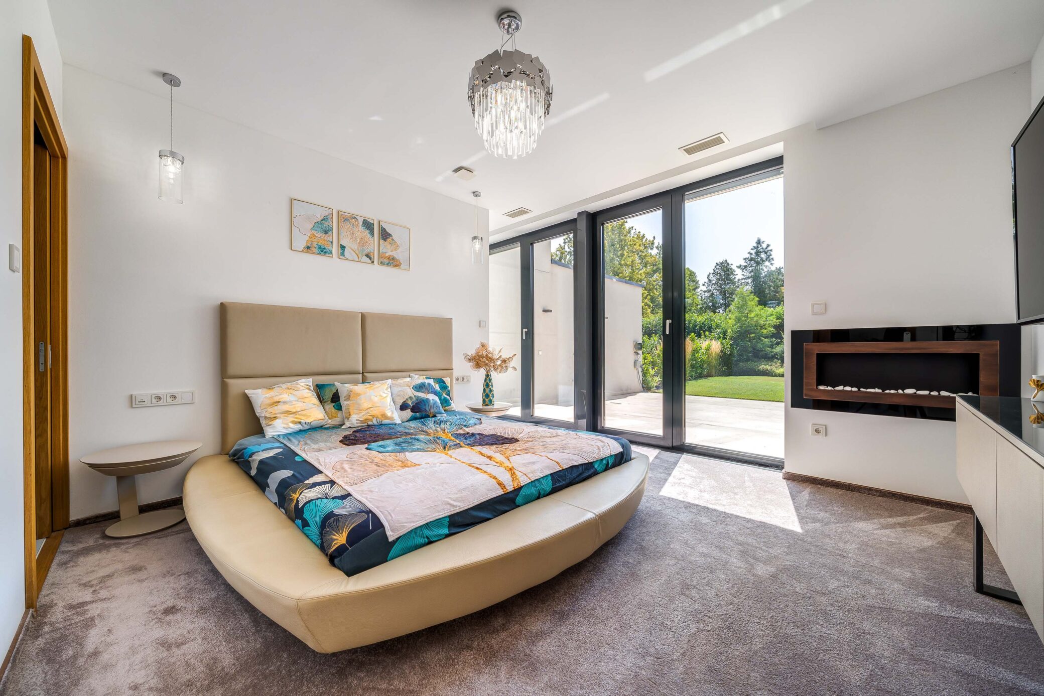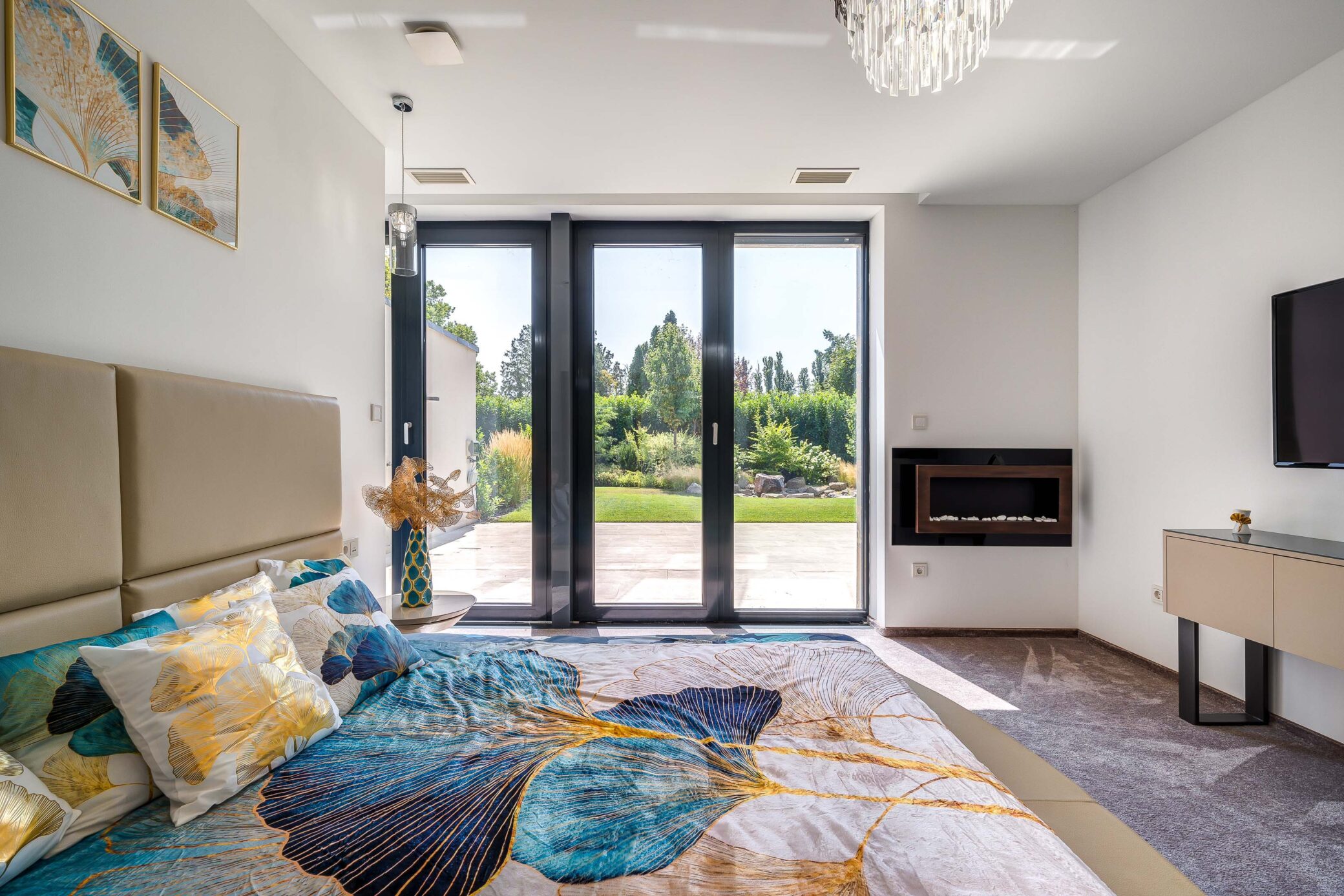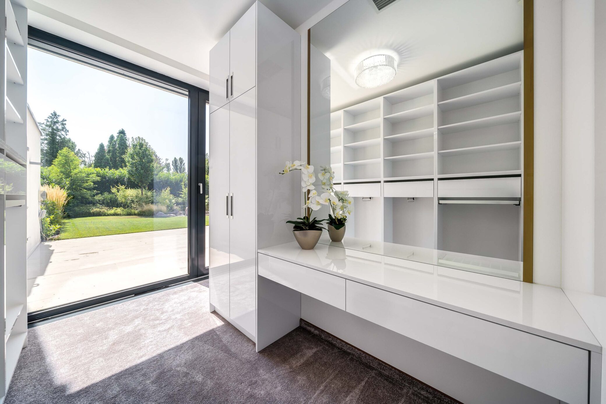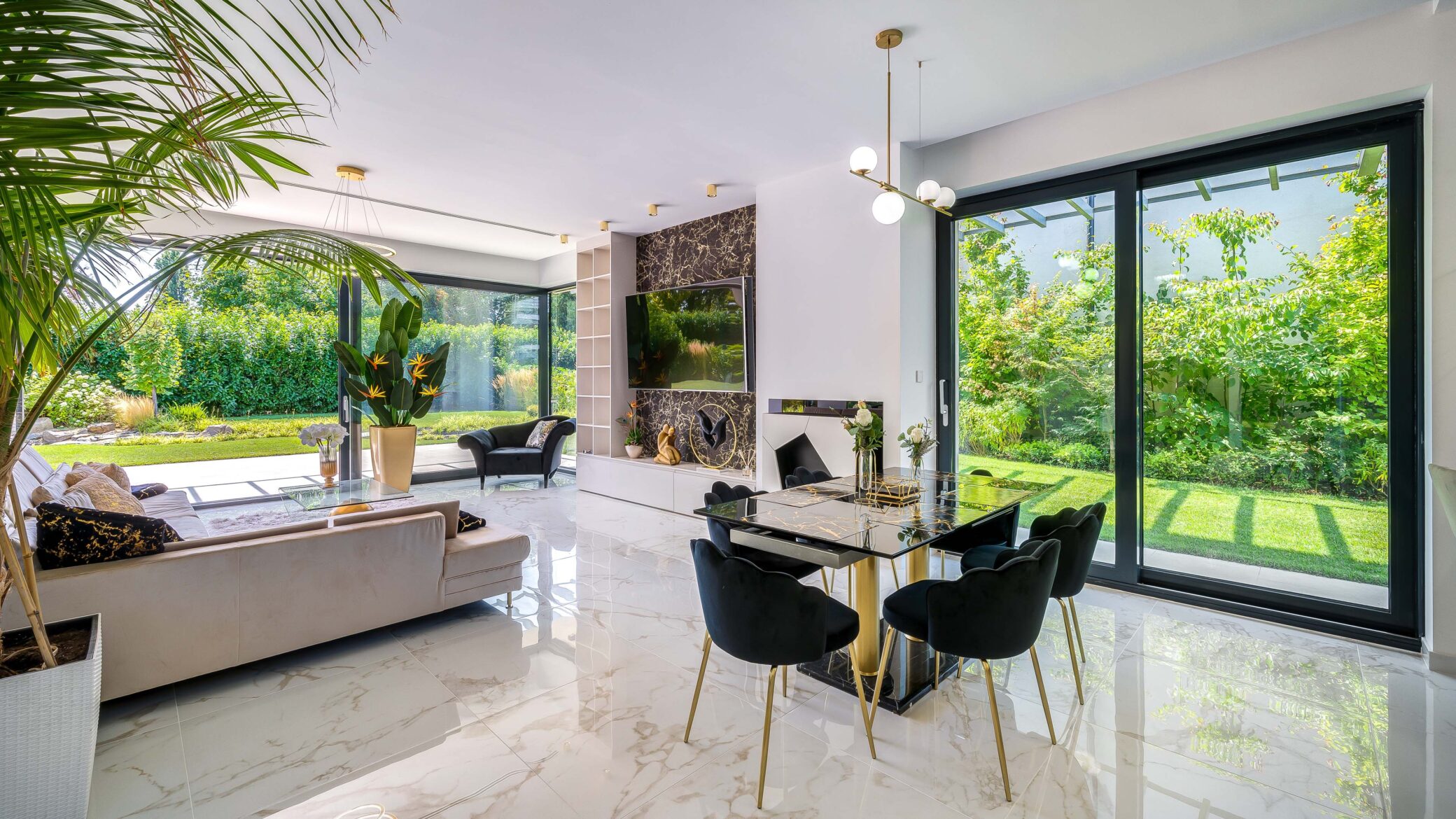 Belül a luxus minden eleme megmutatkozik: ragyogó fehér márványfelületek, arany kiegészítők és modern bútorok együttesen adják vissza a tér kifinomultságát. A fotózás során a fények és tükröződések hangsúlyozták ki a belső tér gazdagságát és tiszta harmóniáját.